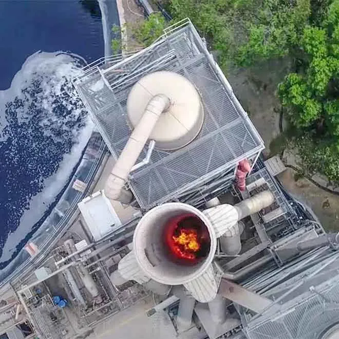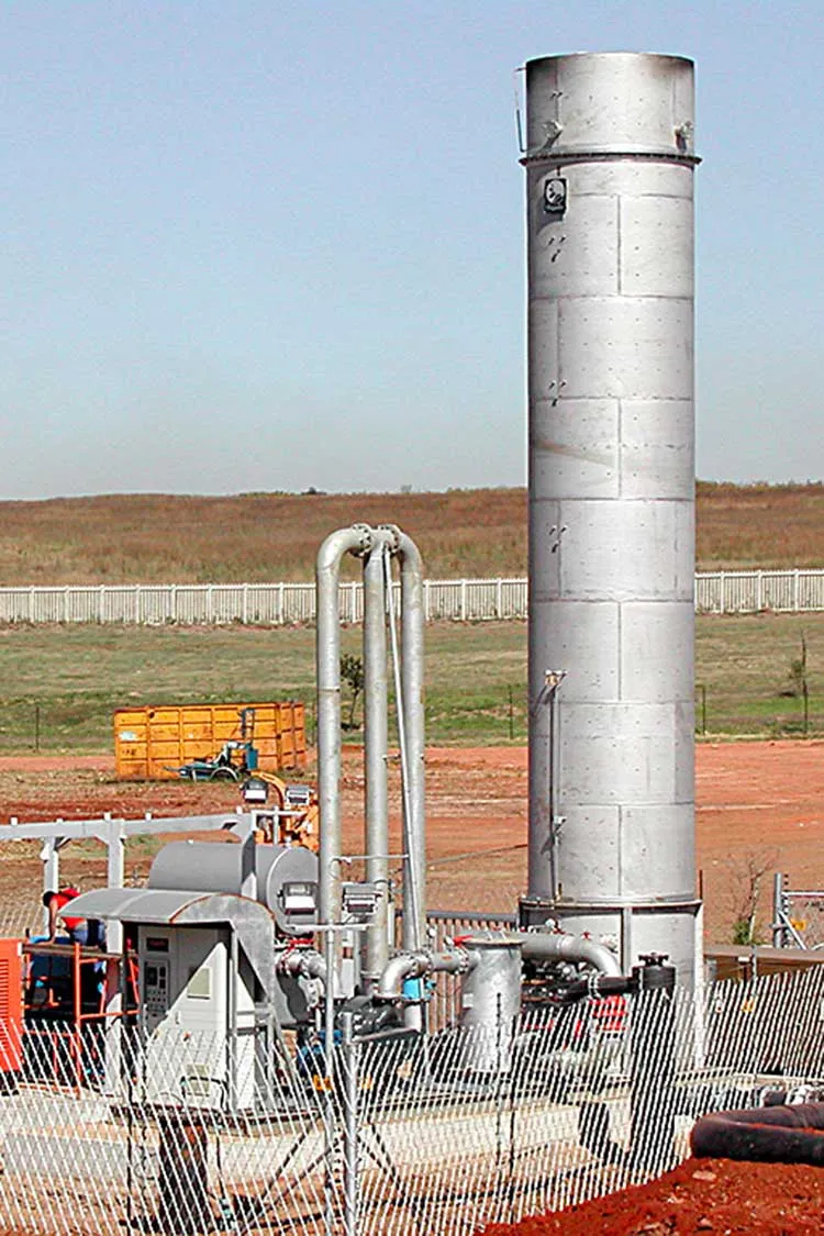 Shrouded flame flares allow combustion up to 1,200ºC and 0.5 seconds retention time.