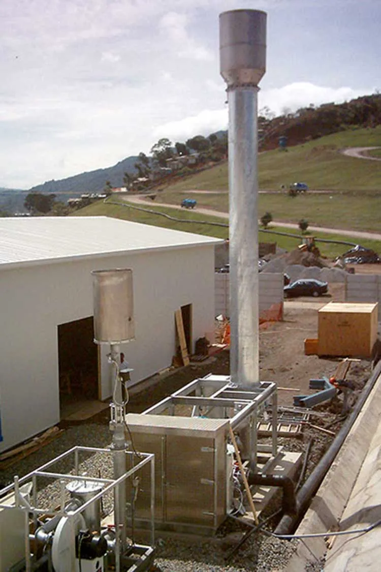 In normal landfill gas flares, for example, the usual minimum methane concentration at which a flare will burn is around 15 to 20% methane. Codes of practice, indeed, suggest that combustion should be halted when methane drops below 20% to avoid the possibility of an explosion. The LHC Range flare is designed specifically to burn below 20%. It has inbuilt explosion protection measures and can operate down to as little as 5% methane in air.