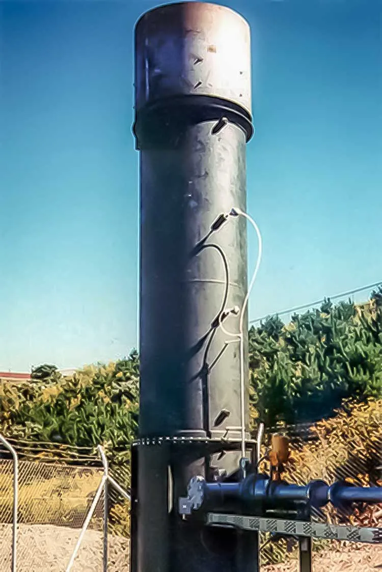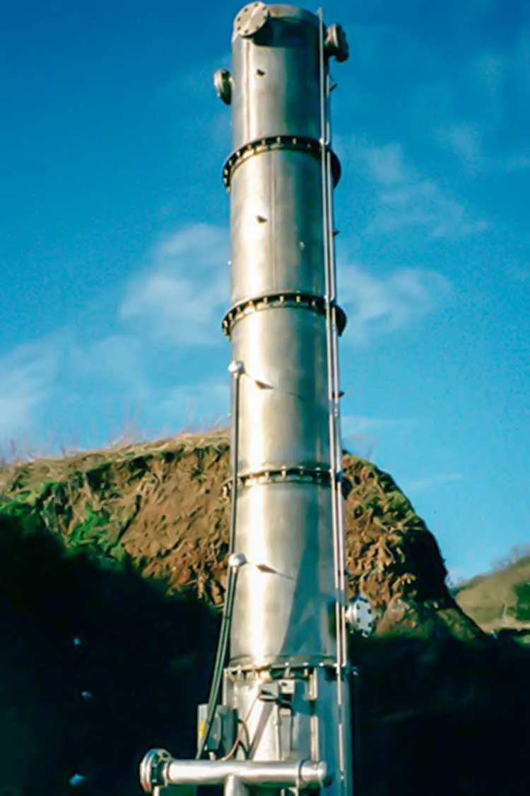 The AC range of flare stacks is designed to offer a degree of control over the combustion process in an elevated flame burner. The burner tip design is based upon the principle of pre-aerated combustion giving the option of a short sharp, non-luminous flame, as opposed to the yellow-tipped long lazy flame typical of diffusion burners.